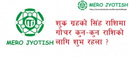 पुरा पढ्नुहोस्शुक्र ग्रह सिंह राशिमा रहँदा तपाईंलाई कस्तो प्रभाव पर्छ ? जान्नुहोस्।