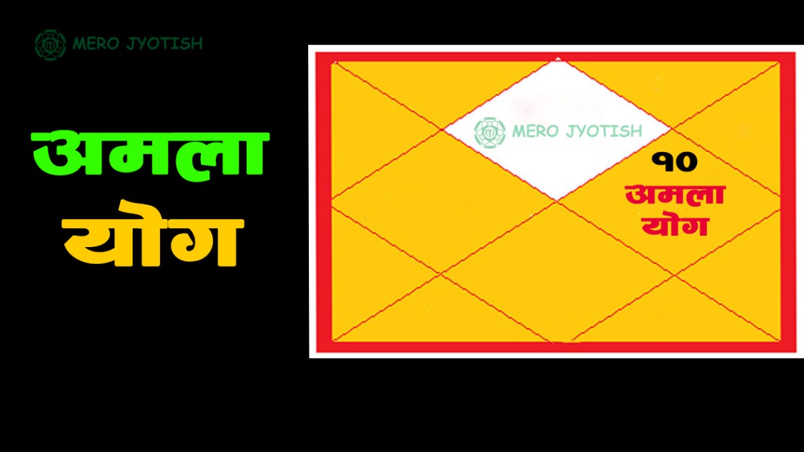 १. चन्द्रमा जुन राशिमा बसेको छ, त्यस राशिबाट दशम स्थानमा यदि शुभ ग्रह बसेको छ भनेअमला योग हुन्छ ।